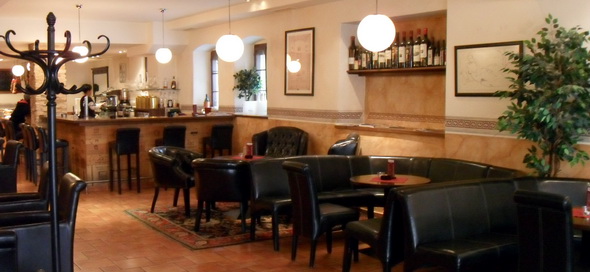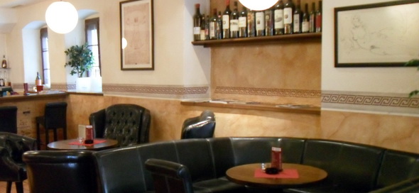 Einfach wohlfühlen oder moderner gesagt „chillen“ und dabei Freunde treffen, beschreibt das Lokal wohl am besten. Das alte Gemäuer, der italienische Steinboden mit Teppichen belegt, die Ledersessel, der gemütliche Tresen und die zu Stehtischen umfunktionierten Barrique-Fässer – schon die Einrichtung vermittelt eine gediegene Atmosphäre.